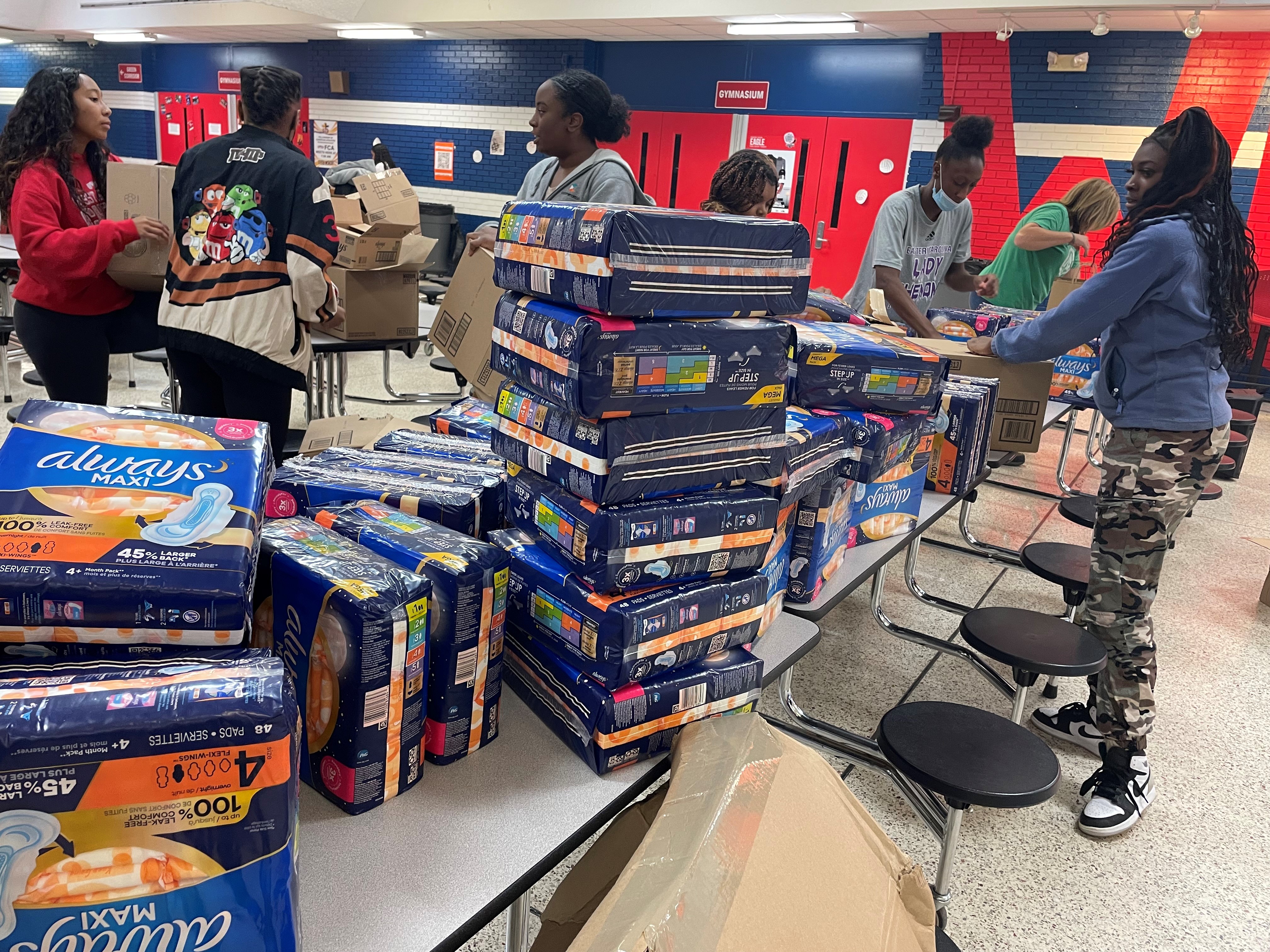 United Way of Coastal Carolina partners with International Paper in New Bern, NC to assist in the packing and distribution of Feminine Hygiene kits which are distributed to local public schools as part of International Paper's worldwide initiative to End Period Poverty and Keep Girls in School. Volunteers from International Paper, United Way, MOEN and other community organizations provide the manpower to pack the kits which have a variety of products and notes of encouragement. Kits are given to school counselors and nurses in Craven, Jones and Pamlico Counties.
